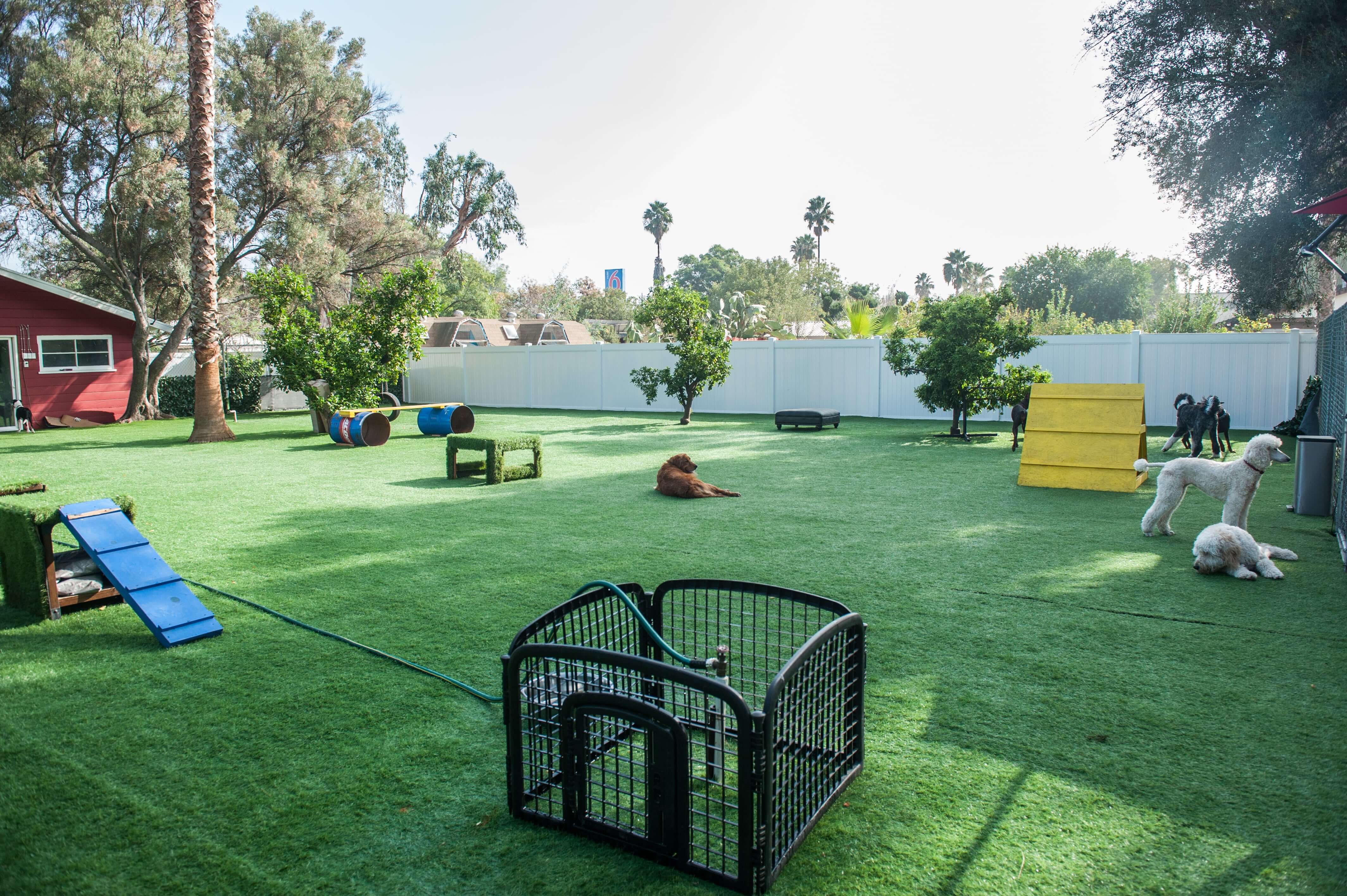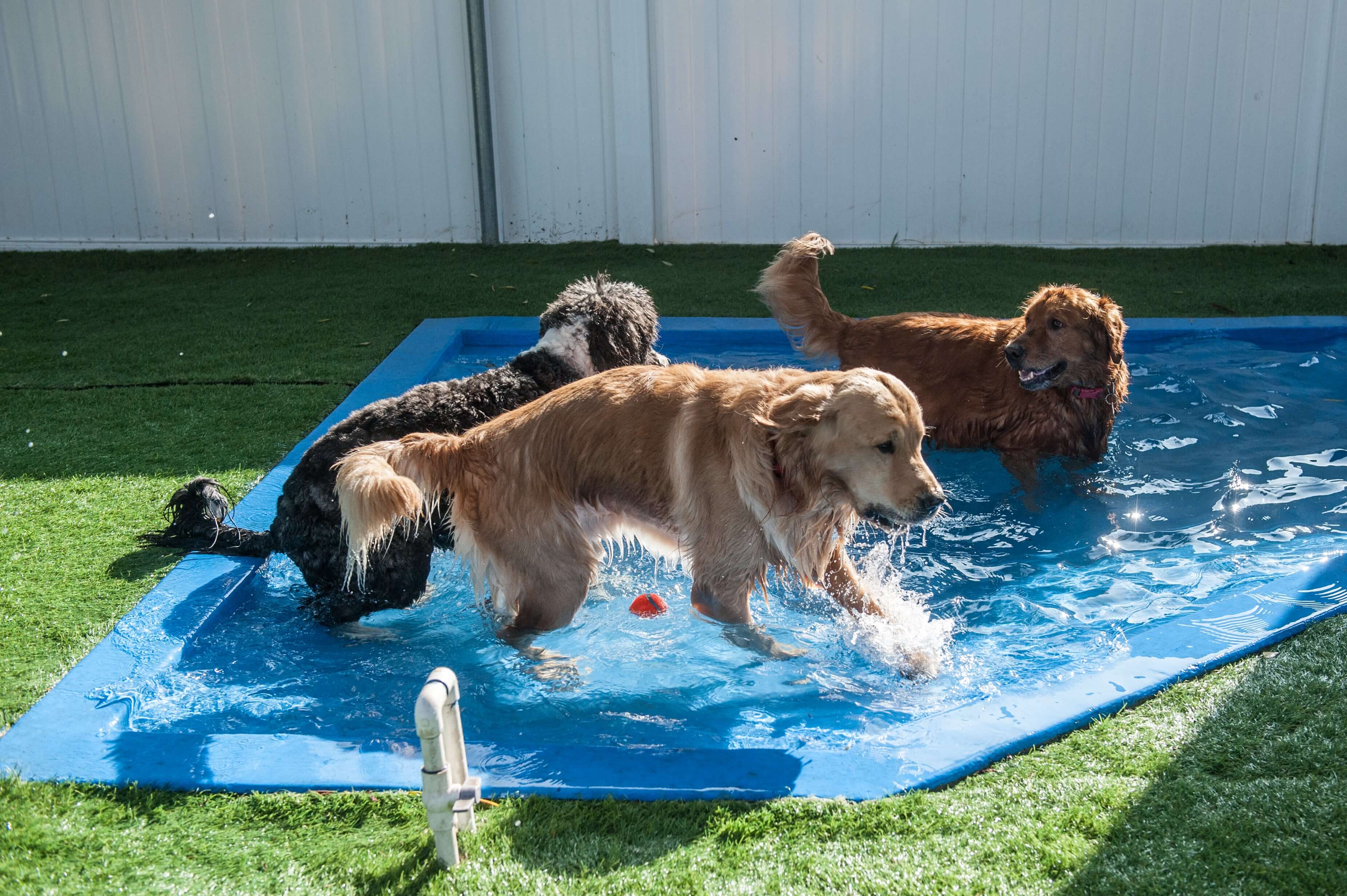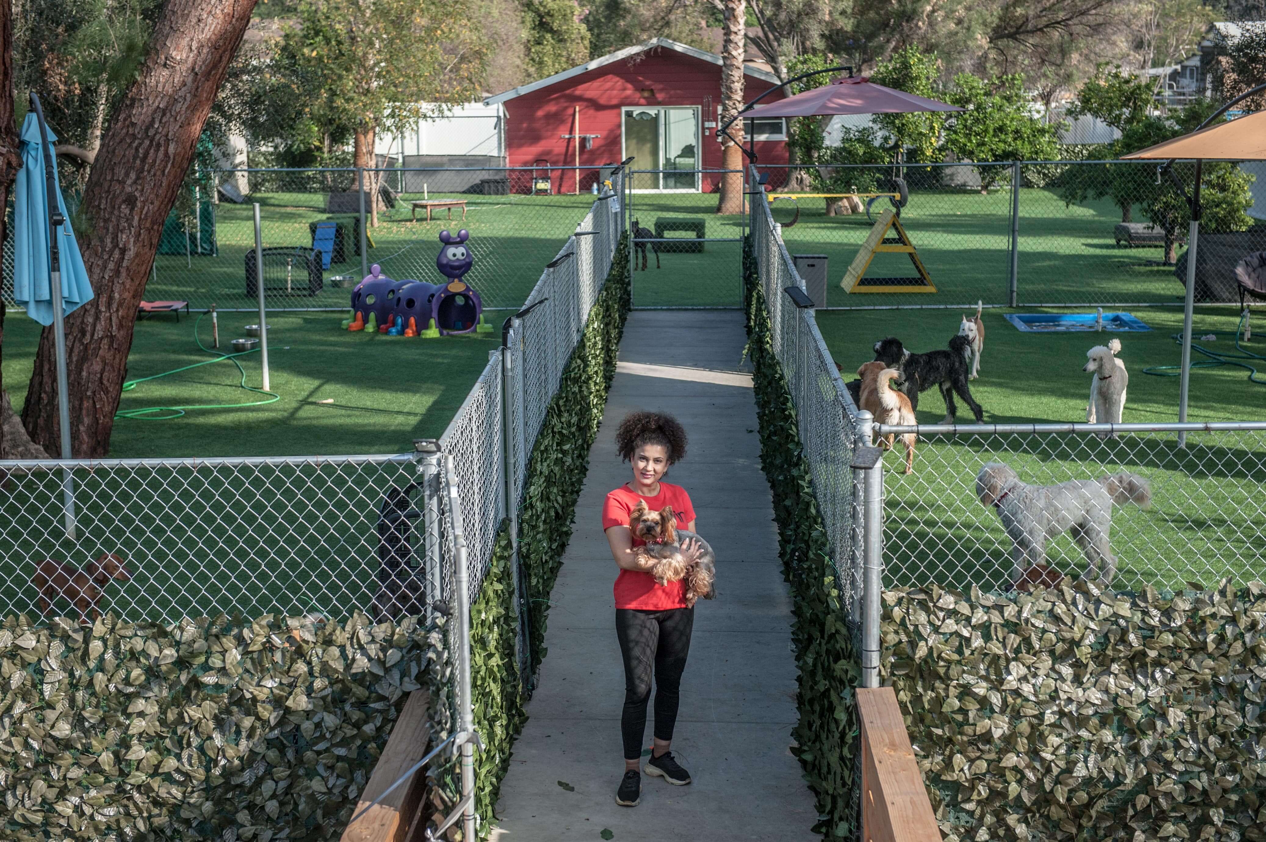 There are six separate areas for dogs, outdoor and indoor, including multiple play areas with trampolines, mazes, pools, toys and other fun activities for dogs
