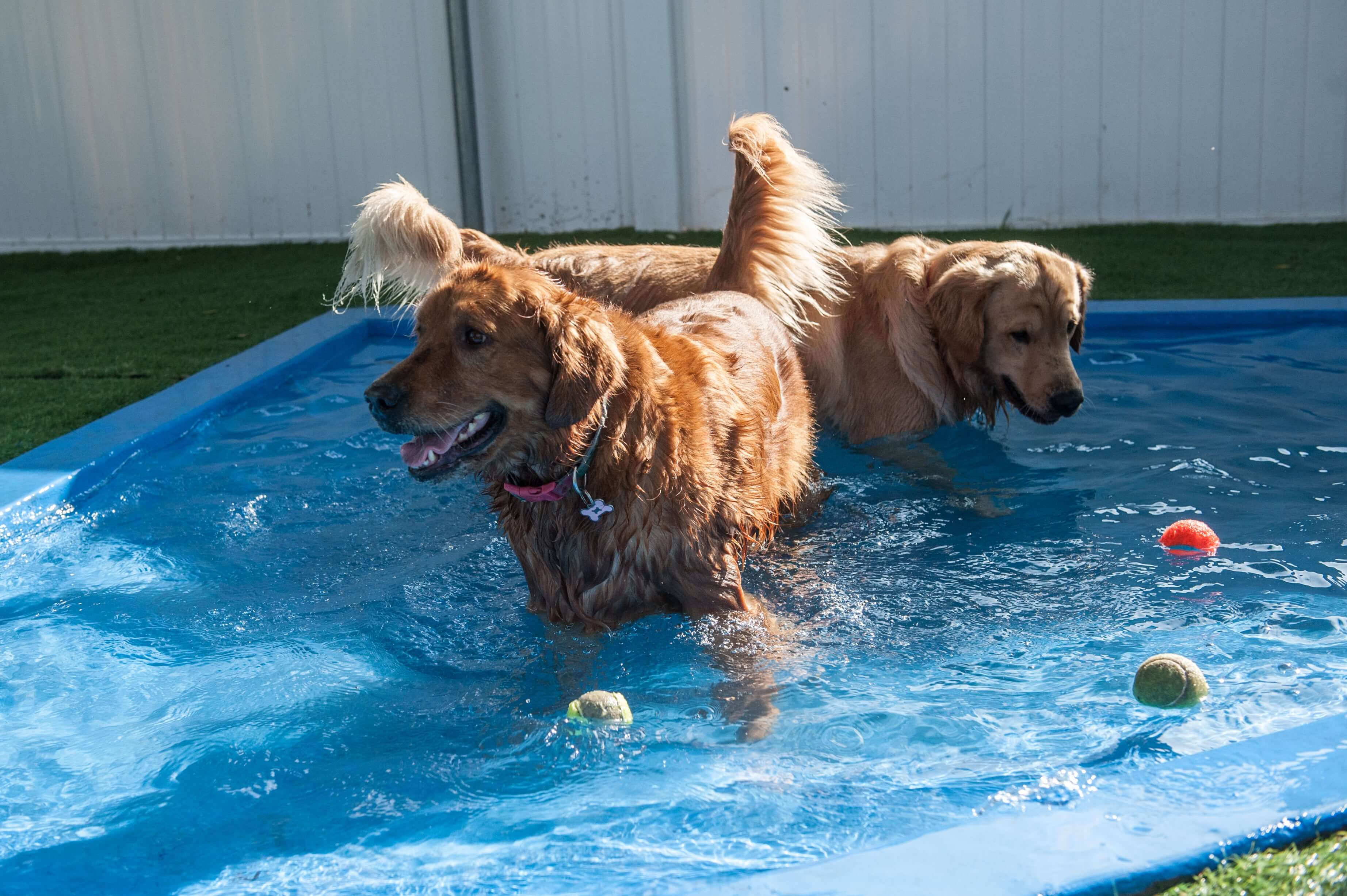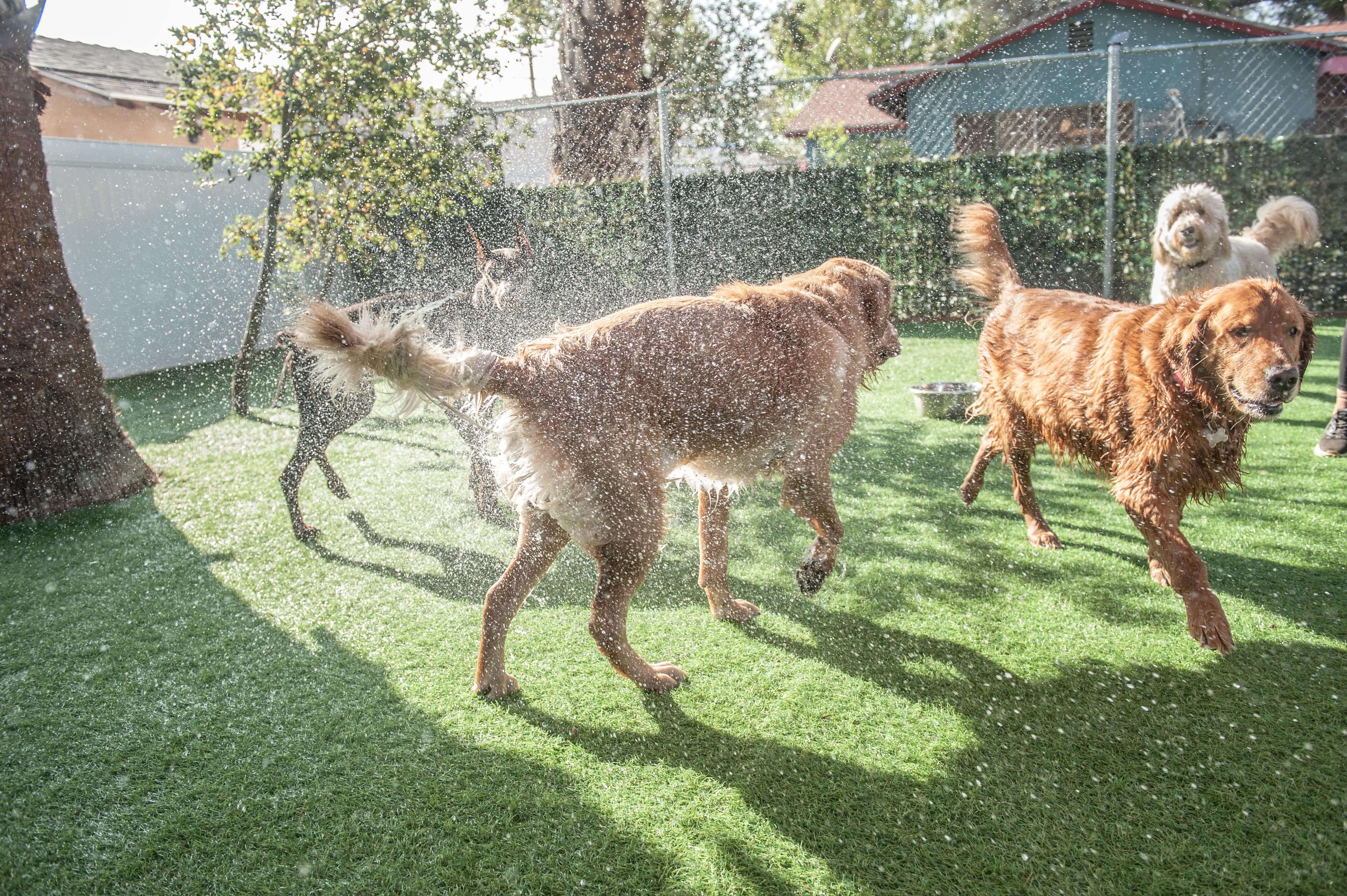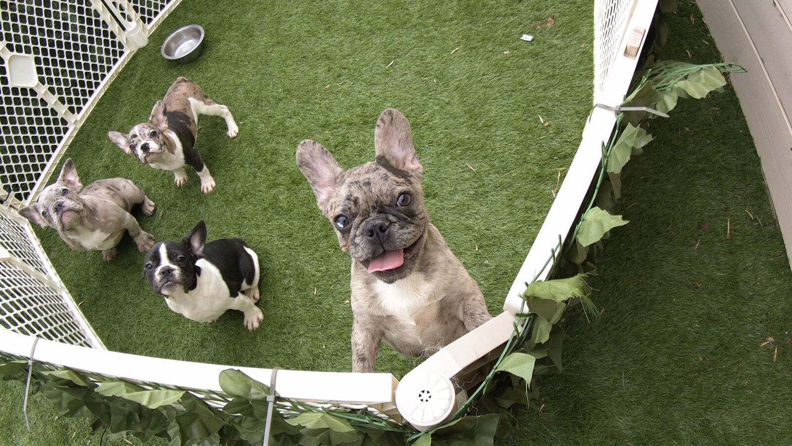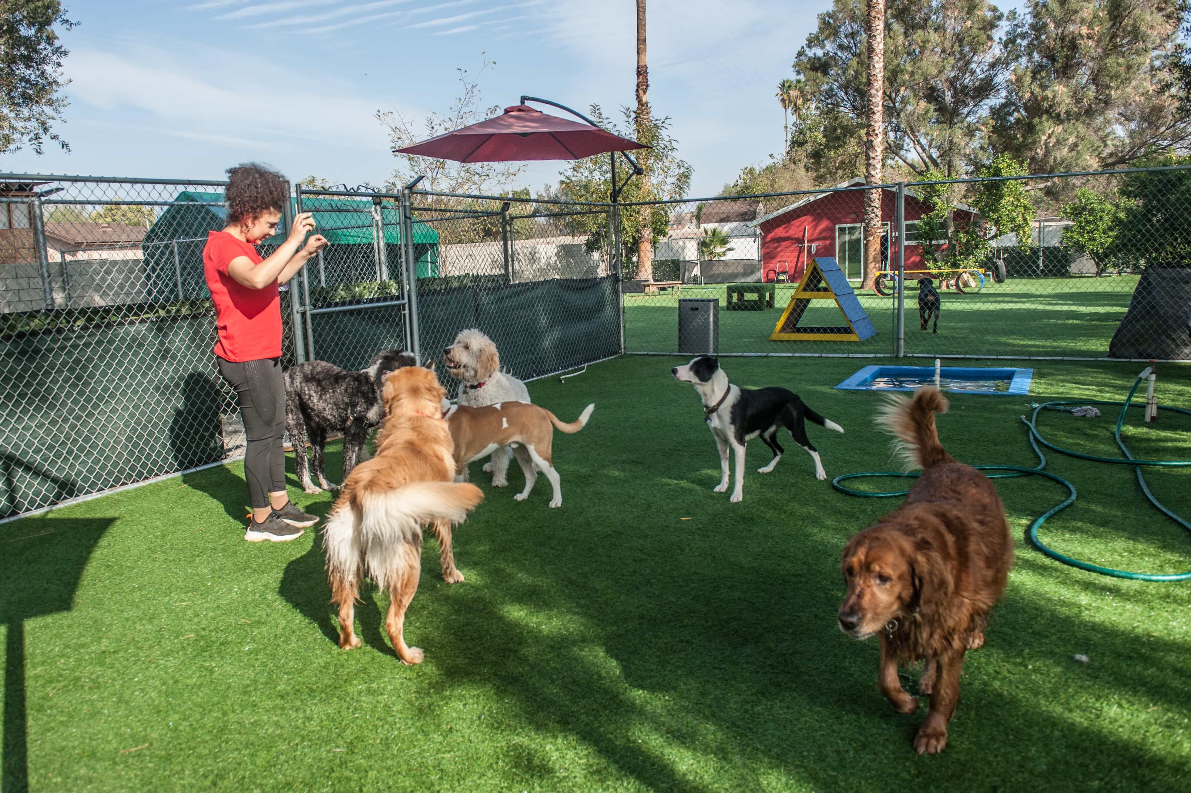 There are six separate areas for dogs, outdoor and indoor, including multiple play areas with trampolines, mazes, pools, toys and other fun activities for dogs